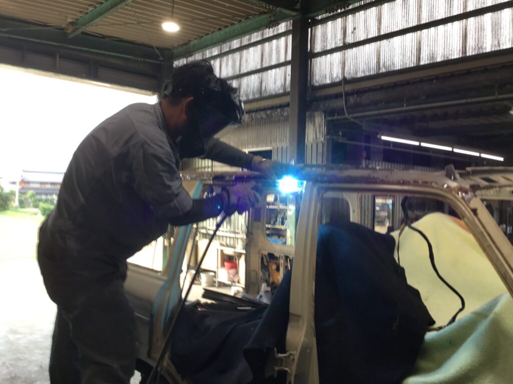 ボディの痛みも結構いっており、年式なりの腐食もすすみここは創業30年職人技の見せ所でした。ここからカスタム作業を開始しました。